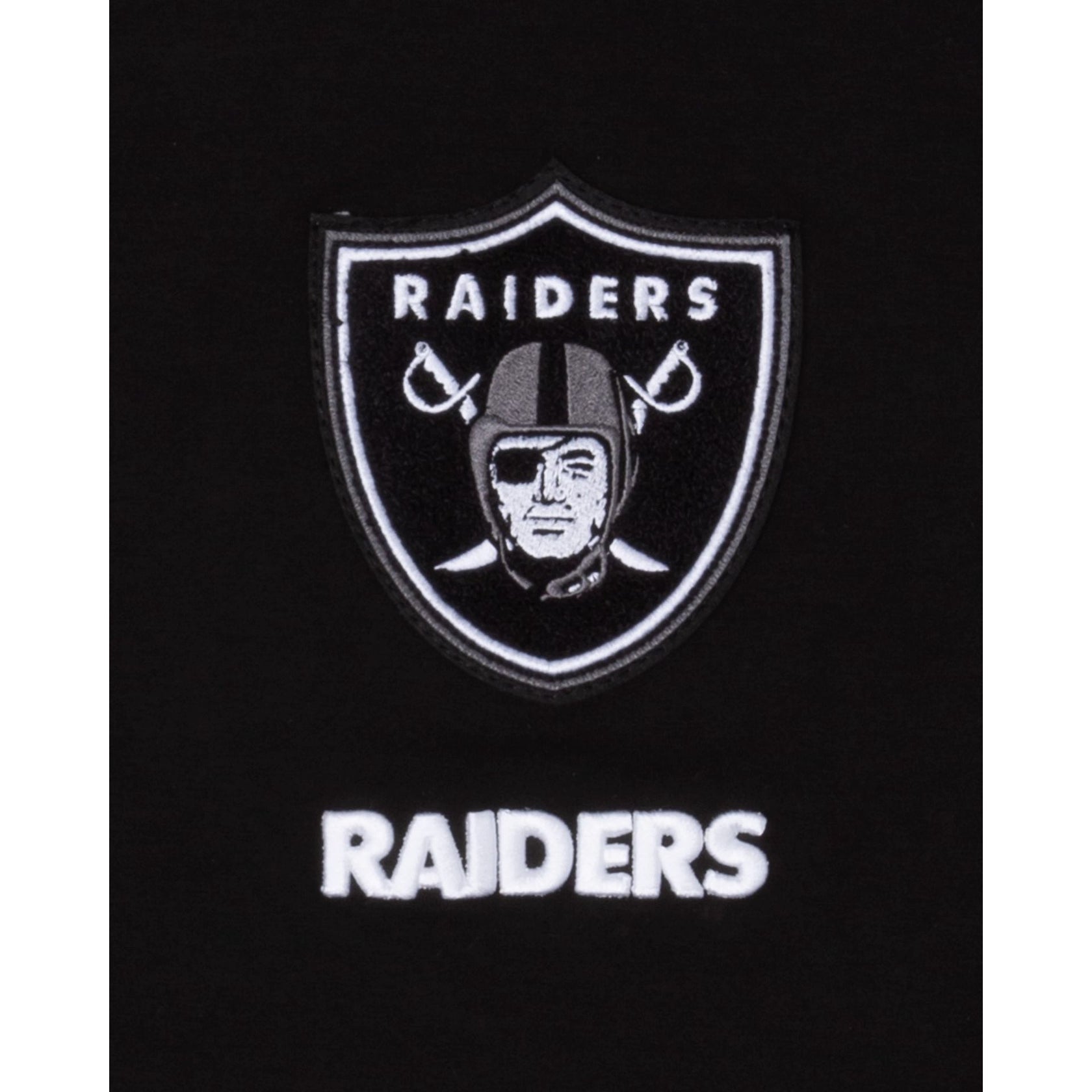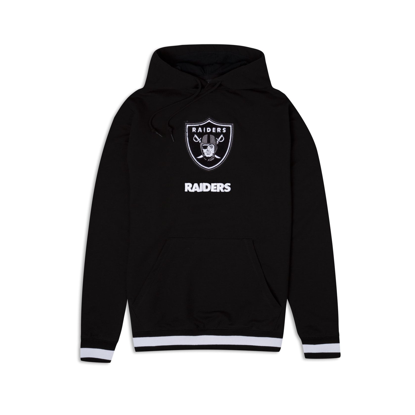The Las Vegas Raiders Logo Select Black Hoodie features a chenille applique Raiders logo above an embroidered team wordmark at the chest.