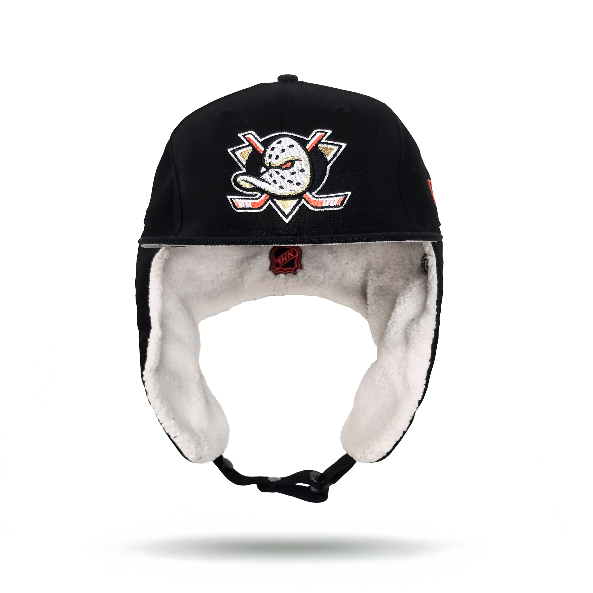 Black Anaheim Mighty Ducks Gray Bottom Dog Ear Flap New Era 59Fifty Fitted