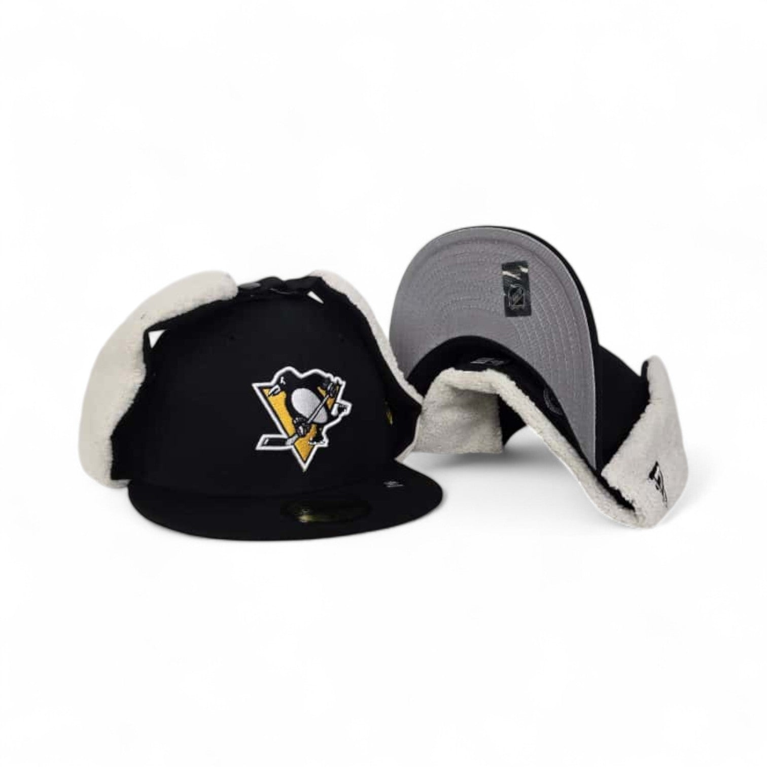 Black Pittsburgh Penguins Gray Bottom Dog Ear Flap New Era 59Fifty Fitted