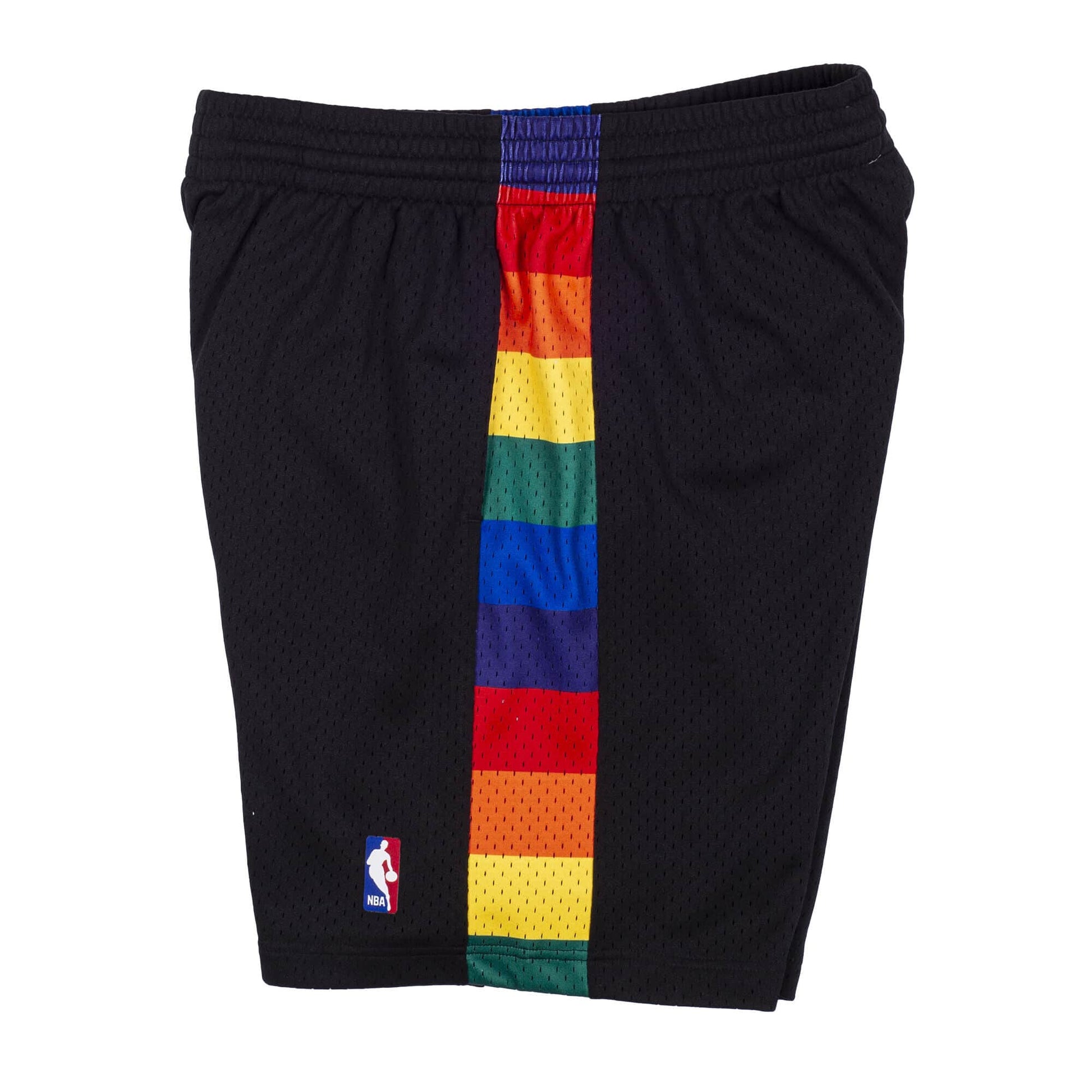 Show off your Denver Nuggets fandom with these Hardwood Classics Swingman shorts from Mitchell & Ness! They feature a sweet, black Denver Nuggets-inspired design. Material: 100% Polyester Logos are heat seal screen printed twill NBA logoman woven heat seal label at front leg waistband with drawstring Mesh material Two side pockets Machine wash, line dry Officially licensed