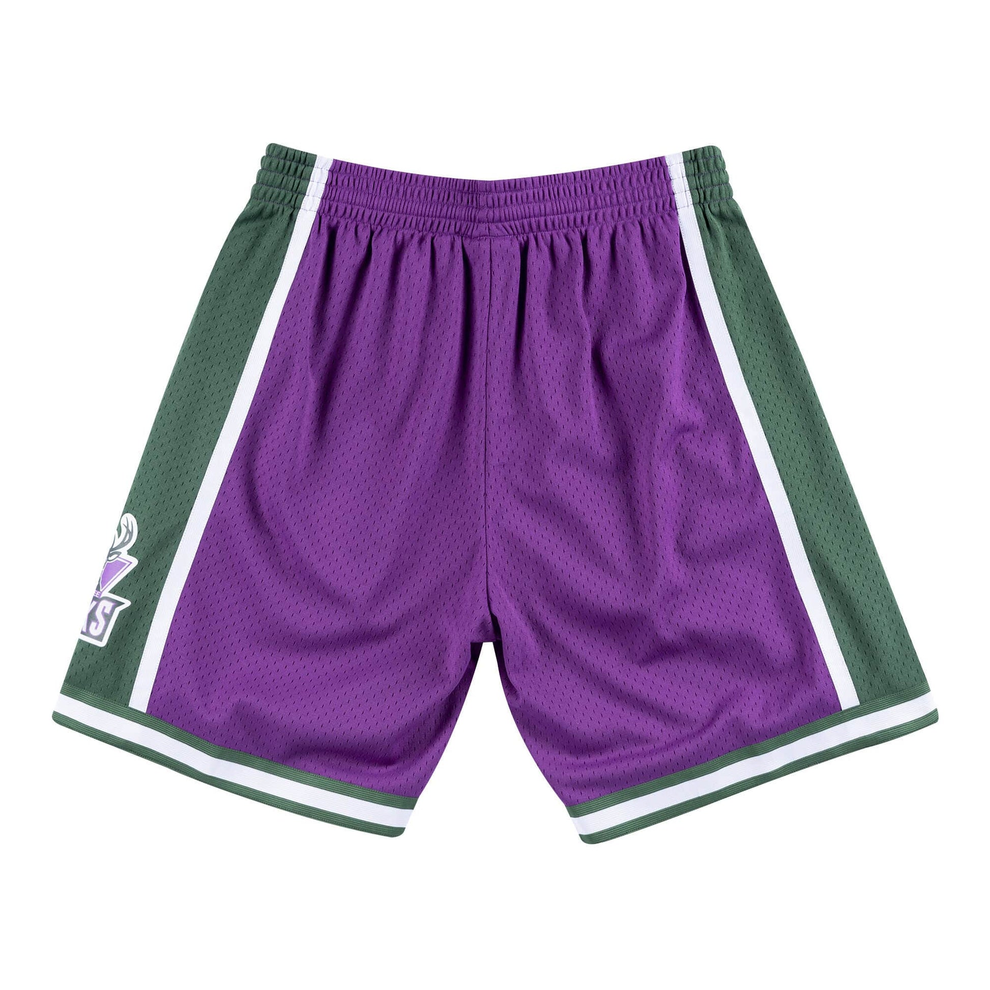 Show off your Milwaukee Bucks fandom with these Hardwood Classics Swingman shorts from Mitchell & Ness! They feature a sweet, Milwaukee Bucks -inspired design. Material: 100% Polyester Applique graphics Elastic waistband with drawstring Mesh material Two side pockets Machine wash, line dry Officially licensed