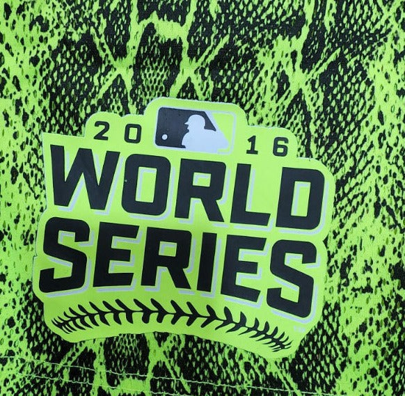 The Chicago Cubs Summer Pop Yellow Shorts feature an all over yellow snakeskin pattern with a screen-printed Cubs logo at the left leg and a 2016 World Series logo at the right leg.