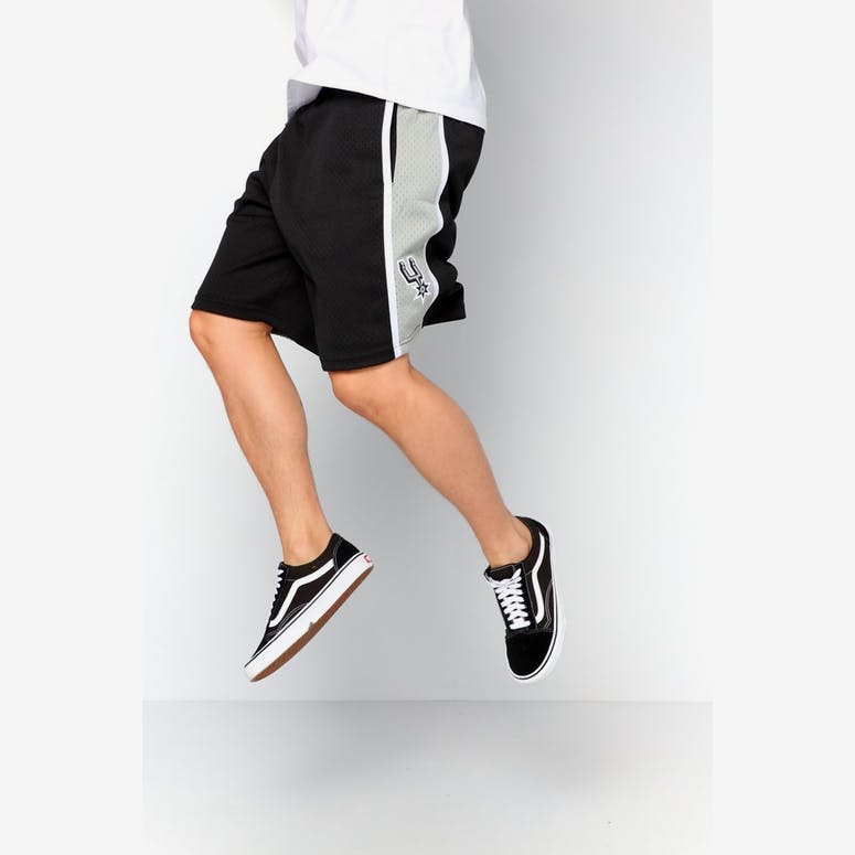 Show off your San Antonio Spurs fandom with these Hardwood Classics Swingman shorts from Mitchell & Ness! They feature a sweet, San Antonio Spurs-inspired design. Material: 100% Polyester Applique graphics Elastic waistband with drawstring Mesh material Two side pockets Machine wash, line dry Officially licensed